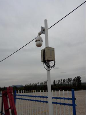 现场球机摄像头和放置我司收发器IMC102B的防水箱