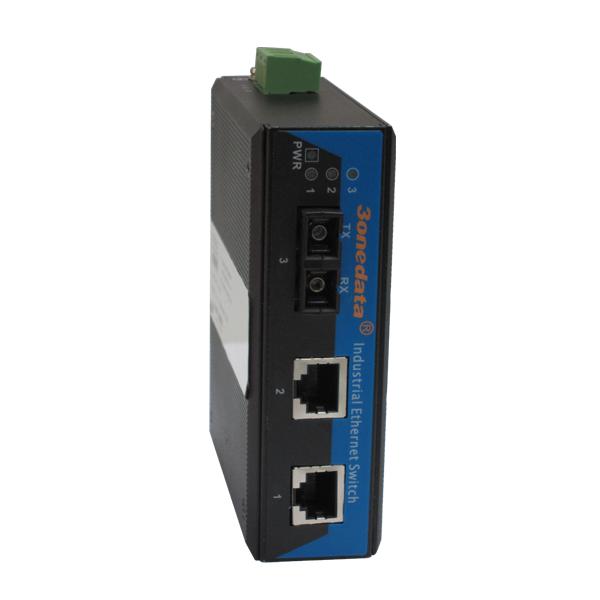 (1)IMC102B是一款工业级光纤收发器,支持2个10Base-T/100Base-TX电口和1个100Base-FX光口。LED灯系统状态显示可以帮助系统维护者监控网络的连接状态。产品符合FCC、CE标准。-40~75℃的工作温度范围能够适应恶劣的工作环境。导轨安装特性,满足工业现场的需求,能为用户的以太网设备连接提供可靠的、快捷的解决方案。