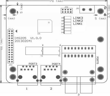 以太网连接指示灯:D7-D9(Link/ACT1-3) 电源指示灯:D4